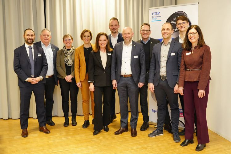 Jonas Projer, Generalsekretär der FDP Schweiz, und Gabriel Macedo, Parteipräsident der FDP.Die Liberalen Thurgau, richteten sich im Hinblick auf die kommenden Wahlen mit eindrücklichen Worten an die Anwesenden. «Wir müssen jetzt mutig zusammenstehen für alle, die den Wecker stellen. Zusammenstehen für die FDP, die das Land gegründet hat. Zusammenstehen für die einzige Partei, die immer noch für Freiheit, Sicherheit, Wohlstand und Eigenverantwortung kämpft.» Nationalrätin Kris Vietze machte sich in ihrem «LiBERNales» Gedanken zu Spielregeln, die nicht mehr gelten. «Wir stehen in einer epochalen Veränderung. Neue Herausforderungen brauchen neue Wege. Die Zeit kann man nutzen oder sie ungenutzt verstreichen lassen. Wir als Freundinnen und Freunde der Freiheit leben die Einheit in der Vielfalt und nutzen den Diskurs zum Fortschritt.»
