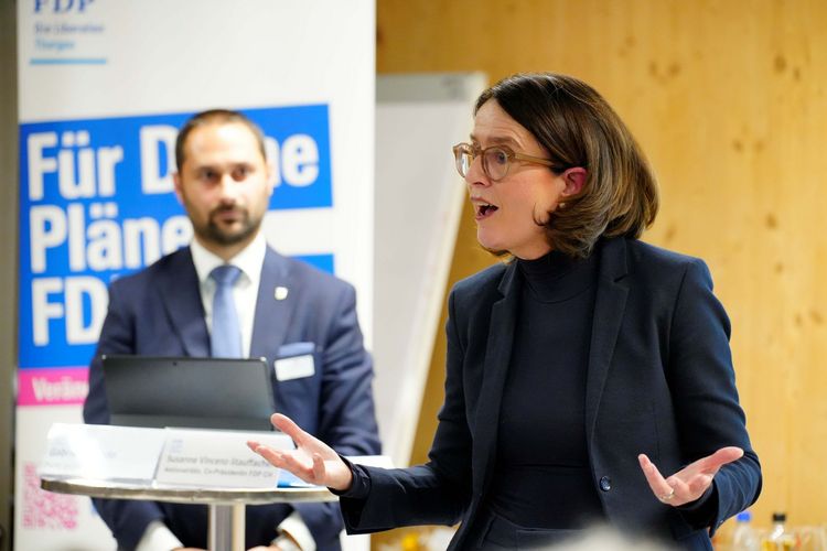 Vier Tage nachdem Susanne Vincenz-Stauffacher als neue Co-Präsidentin der FDP Schweiz gewählt wurde, hielt sie bei den Thurgauer Liberalen in der Haustechnik Eugster AG ihre Antrittsrede. Die St. Galler Nationalrätin will zusammen mit dem Glarner Ständerat Benjamin Mühlemann im Co-Präsidium den Kurs ihres Vorgängers fortführen. «Mein Abstimmungsverhalten im Parlament verrät, dass ich – anders als immer wieder dargestellt – sehr ähnlich wie unser Vorgänger ticke», sagte die frisch gewählte Co-Präsidentin der nationalen FDP auf die Frage von Gabriel Macedo, Präsident der FDP.Die Liberalen Thurgau. Susanne Vincenz-Stauffacher erinnerte an die Kernaufgabe des Staats: «Sicherheit für die Bürgerinnen und Bürger ist das Fundament, auf dem alles steht. Wenn die Weltwirtschaft stottert, dann sind liberale Rezepte wichtiger denn je. Wir wollen die Arbeitsplätze und den Wohlstand unserer Bürgerinnen und Bürger sichern.»