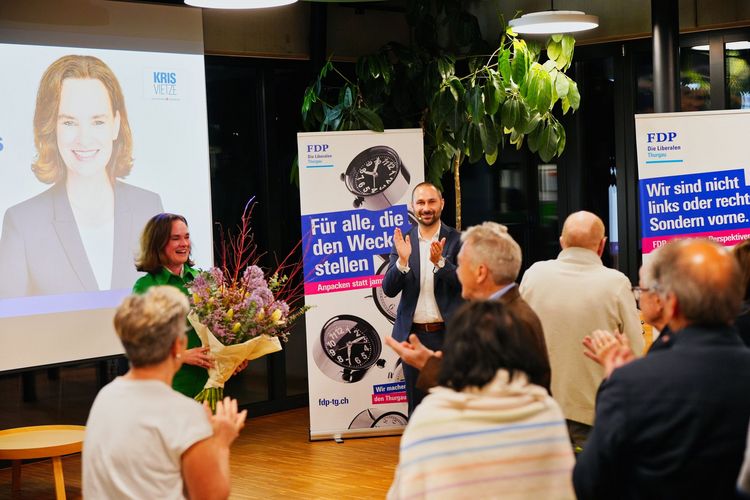 Parteipräsident Gabriel Macedo erläuterte, weshalb die Parteileitung einstimmig Kris Vietze als Kandidatin für die Ständeratswahlen 2027 empfiehlt. «Unsere Nationalrätin Kris Vietze hat das, was kaum jemand in Bern hat. Sie ist Teil des Unternehmertums mit exzellentem Finanzwissen und gleichzeitig engagiert für Gesellschaft und Kultur. Als unabhängige und verlässliche Kraft baut sie Brücken zwischen Menschen, Wirtschaft und Politik. Sie bringt die Menschen zusammen, um gemeinsam Ziele zu erreichen, die allen nützen.» Als frühere Kantonsrätin und ehemalige Präsidentin der Thurgauer Geschäftsprüfungs- und Finanzkommission, aber auch dank ihrem umfangreichen ehrenamtlichen sozialen Engagement und ihrem Einsatz im Bildungsbereich habe Kris Vietze bewiesen, dass sie alles mitbringt, um sich auch als Standesvertreterin in Bern bestens für den Kanton Thurgau einzusetzen. Die amtierende Präsidentin der IHK Thurgau ist bereit, zusätzliche Verantwortung zu übernehmen. Die 57-Jährige Frauenfelderin wird am 24. Oktober 2027 als Nationalrätin und als Ständerätin zur Wahl antreten. Einstimmig und mit grossem Applaus nominierten die über 100 Anwesenden Kris Vietze als Ständeratskandidatin. Die Nominierung für die Nationalratswahlen findet an einer separaten Versammlung im Spätherbst statt.